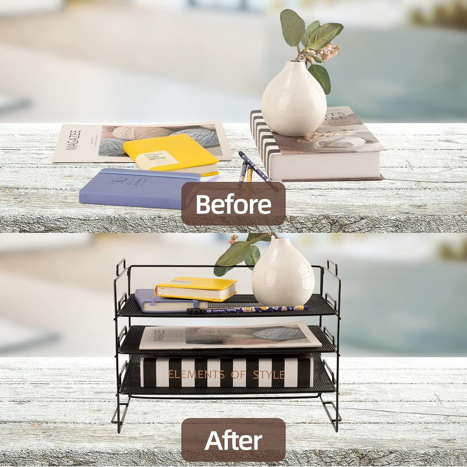 - tapelbares Schreibtischablage: Der Schreibtisch-Organizer bietet Ihnen unbegrenzte Einsatzmöglichkeiten, das stapelbare Design ermöglicht es Ihnen, sie zusammen zu stapeln oder sie an verschiedenen Orten separat zu stellen. Sie werden genau auswählen, wie Sie Ihre eigenen Papiere, Briefe, Dateien, Ordner, E-Mails und mehr organisieren können, um Ihren Schreibtisch sauberer und ordentlicher zu machen.