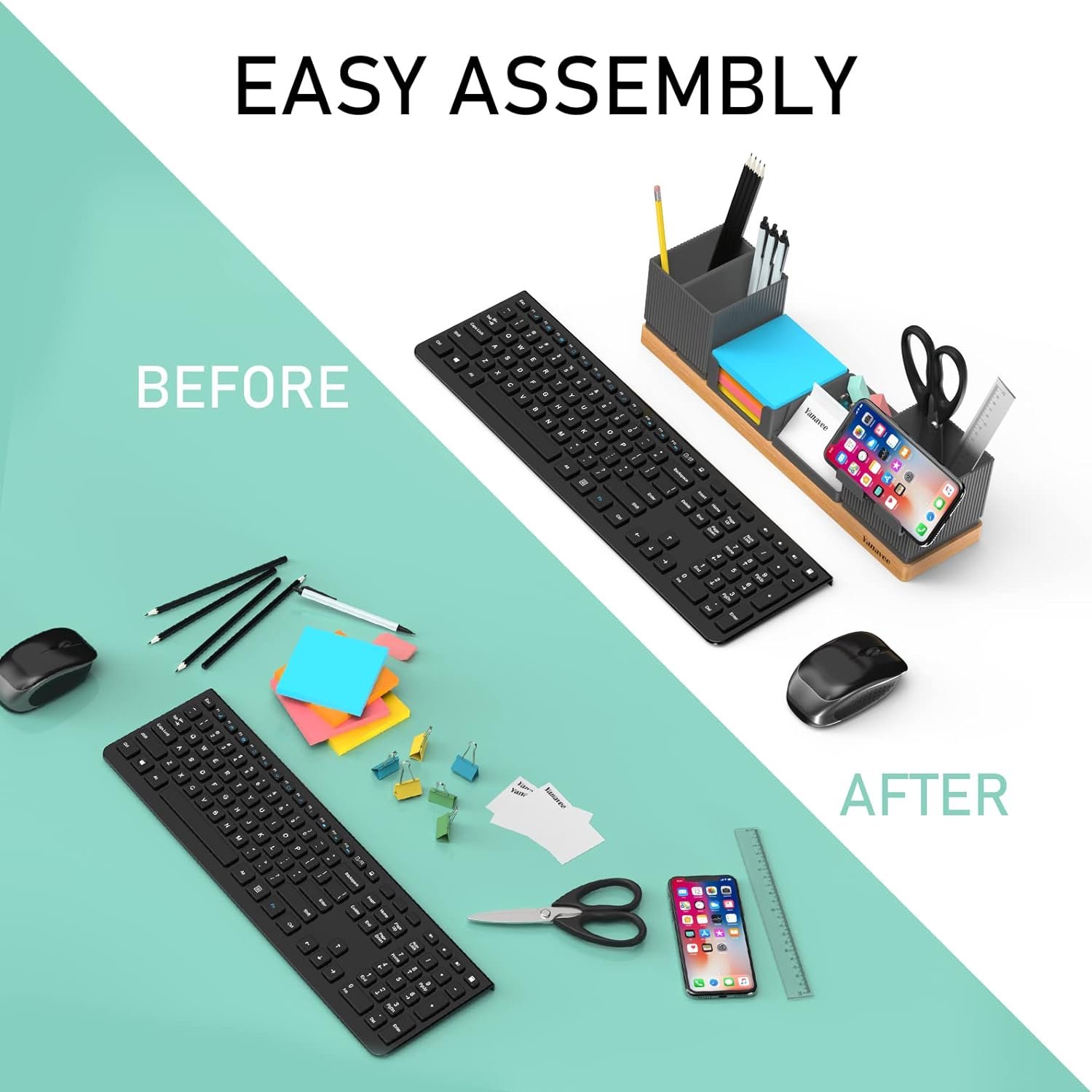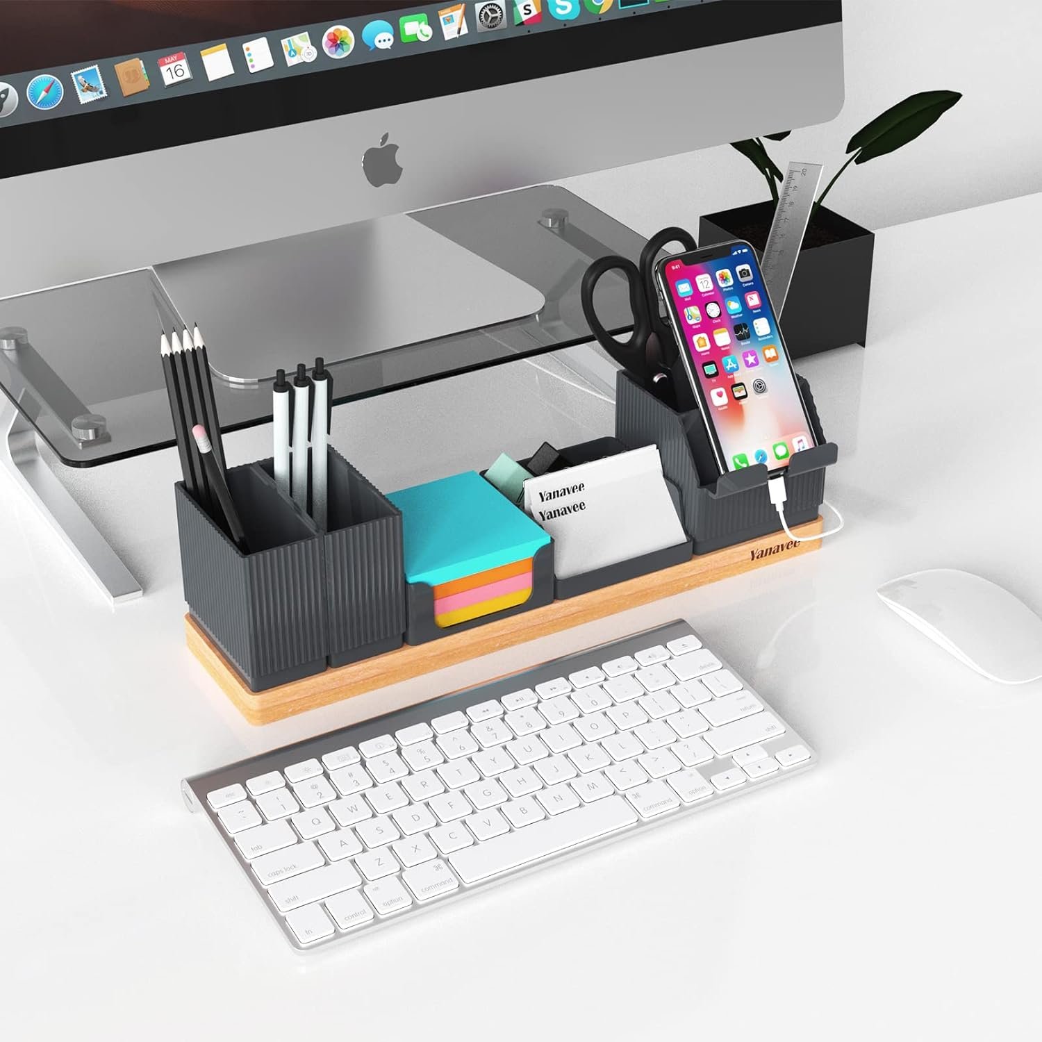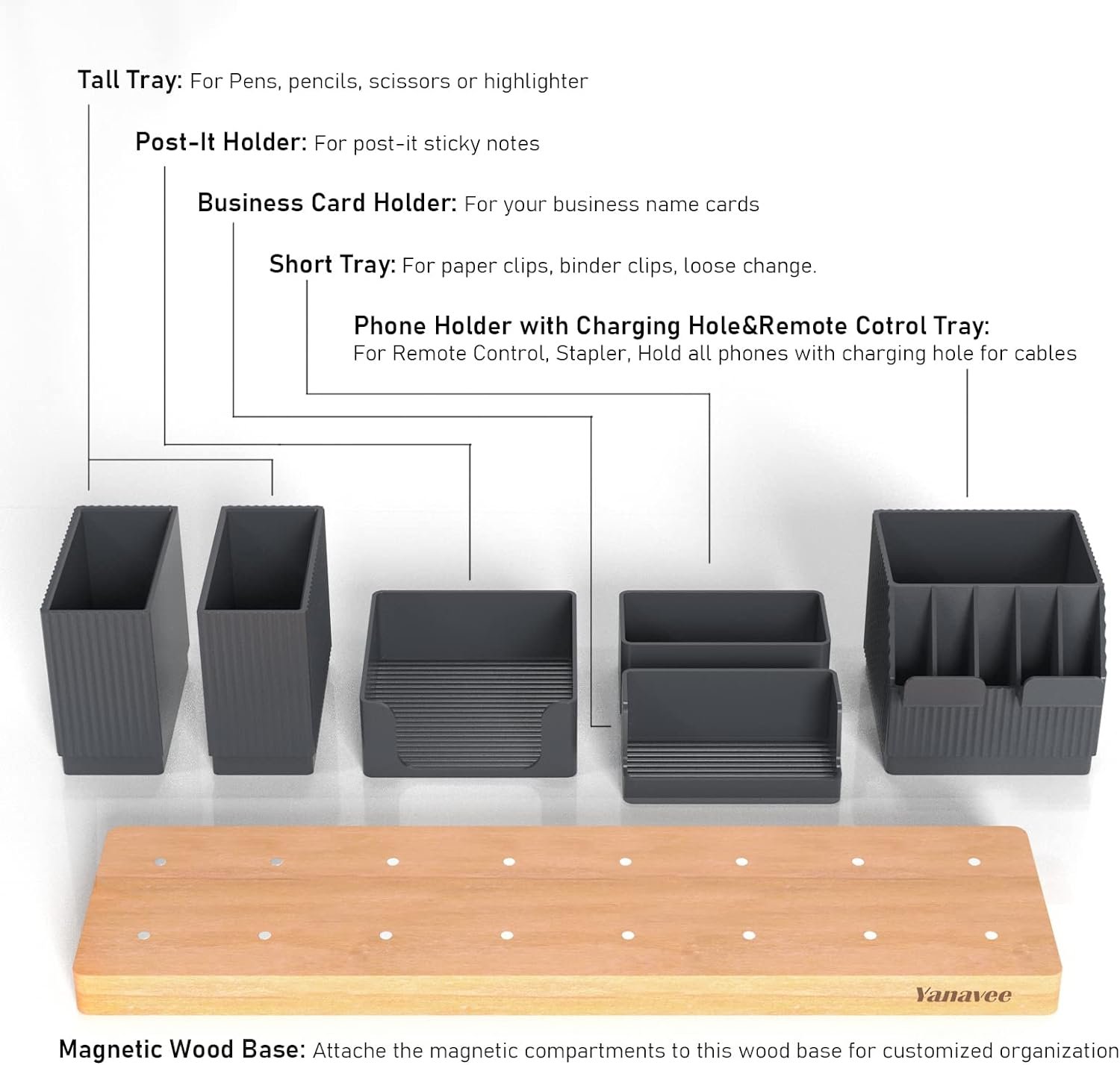 - Dieser Schreibtisch-Organizer besteht aus 6 Teilen, Telefonhalter mit Fernbedienungsfach, Visitenkartenhalter, Bleistiftbecher, Haftnotizfach, Büroklammerfach, ein vielseitiges Organisationswerkzeug zur Verbesserung Ihrer Arbeitseffizienz