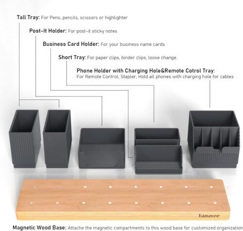 - Vielseitiger Tisch Organizer: Mit einem Holzfuß und sechs verstellbaren verschiedenen Fächern können Sie diesen Schreibtisch ganz einfach nach Ihren Wünschen neu anordnen, perfekt zum Platzieren von Bleistiften, Telefon, Visitenkarten, Haftnotizen, Fernbedienung, Mini-Hefter und anderem Büro Lieferungen